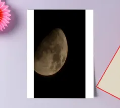 The moon hangs in the night sky, glowing with a soft, silvery light. Its surface is marked by craters and shadows, giving it a mysterious, ancient presence as it quietly watches over the Earth