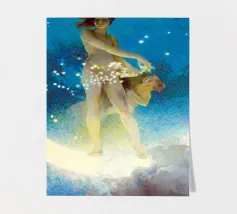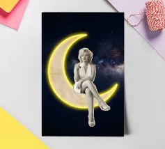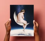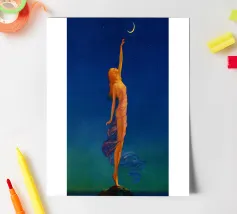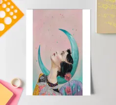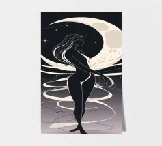 Moonwatcher is a thought-provoking wall art piece that delves into themes of love, connection, and the passage of time. This artwork features a mesmerizing depiction of the moon and her guardian.