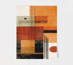 Retro-inspired art with overlapping forms in earthy orange and brown. The design has a timeless quality that fits beautifully in mid-century interiors, Scandinavian homes, or eclectic spaces with a nostalgic twist.