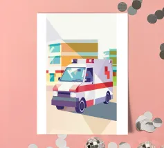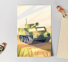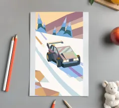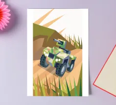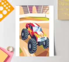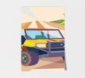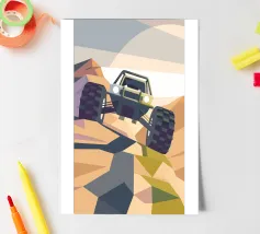 Get an illustration of an off-road vehicle on a dirt road with a modern geometric style.