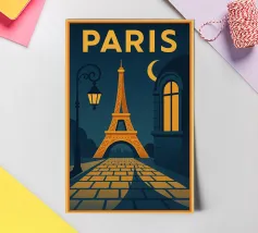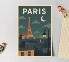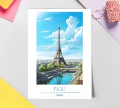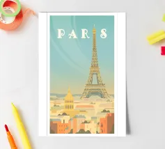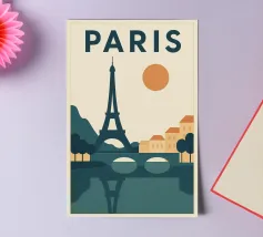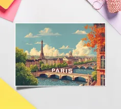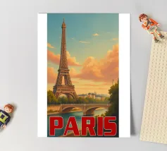 A timeless travel poster inspired by the charm of paris, capturing iconic scenery in a vintage retro style. With a harmonious blend of color and composition, this artwork brings nostalgic vibes and wanderlust to your walls — perfect for travelers, design lovers, or anyone who dreams of Paris.