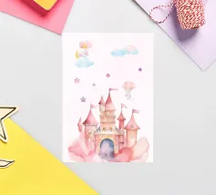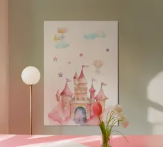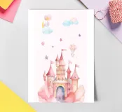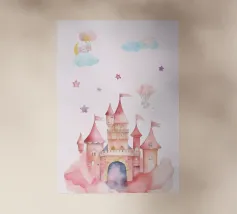 This enchanting artwork, featuring a whimsical castle nestled among fluffy pink clouds and framed by a soft rainbow, is a dreamy addition to any setting. Perfect for decorating a child’s room, adding charm to stationary, or as an eye-catching design for apparel and home goods. Its versatile, magical aesthetic makes it ideal for use on various products, such as notebooks, prints, t-shirts, phone cases, and more. Embrace the fantasy and let this illustration bring an element of wonder and joy wherever it goes!