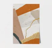 Textured patches in warm hues evoke a shifting desert in abstract relief.