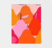 A modern illustration of pears in soft colors and simple forms.
