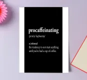 Embrace your coffee addiction with our witty "Procaffeinating" typography art print. This clever design presents a humorous definition in crisp white text on a sleek black background, mimicking a dictionary entry. Perfect for coffee lovers and procrastinators alike, it adds a touch of relatable humor to any kitchen, office, or café. The stark contrast and formal typography style create a visually striking piece that's both amusing and stylish. Available on various products, this versatile design makes an ideal gift for anyone who can't function without their daily brew.