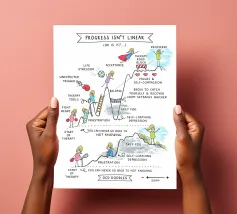 An abstract wave composition symbolizing growth, setbacks, and momentum. Soft pastel colors flow organically, reflecting the reality that progress moves in curves, not straight lines. A calm yet powerful visual reminder to trust the process, embrace change, and keep moving forward at your own pace.