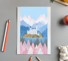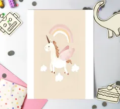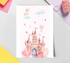 This enchanting artwork, featuring a whimsical castle nestled among fluffy pink clouds and framed by a soft rainbow, is a dreamy addition to any setting. Perfect for decorating a child’s room, adding charm to stationary, or as an eye-catching design for apparel and home goods. Its versatile, magical aesthetic makes it ideal for use on various products, such as notebooks, prints, t-shirts, phone cases, and more. Embrace the fantasy and let this illustration bring an element of wonder and joy wherever it goes!