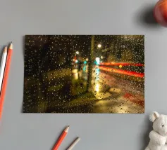 Raindrops on a window pane after heavy rain.