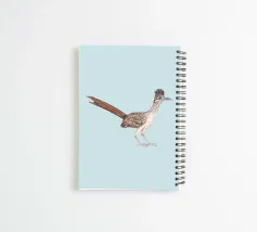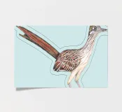 A pencil drawing in coloured pencils of a greater roadrunner. You can see the bird from the side, so that its long tail is nicely in the picture.