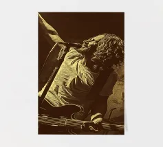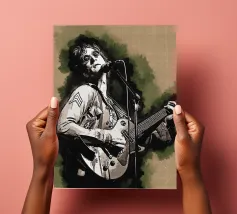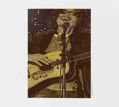 Wrapped in darkness and quiet strings, Dylan stands as a whispering shadow of song.