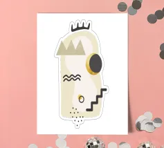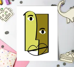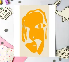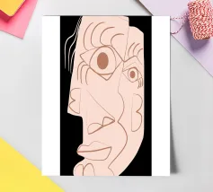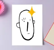A simplistic, abstract face is drawn with bold black lines and features a prominent yellow star shape on its forehead. The expression is minimal, with small dots for eyes and a straight line for a mouth.