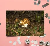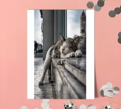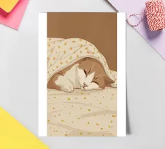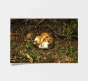 Add a touch of warmth and serenity to your space with this charming poster of a peaceful cat napping in a lush garden. Capturing the gentle rays of sunlight filtering through the greenery, this scene evokes a sense of calm and contentment. Perfect for cat lovers, nature enthusiasts, and anyone seeking to bring a cozy, relaxed vibe into their home. Let this endearing image of a sleeping feline remind you of the simple joys of life, where every day holds a quiet moment of rest and beauty.