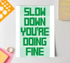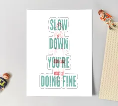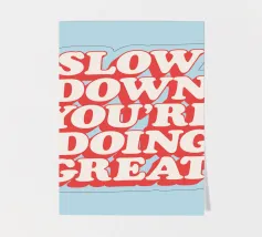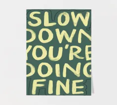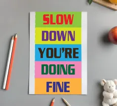 A gentle pause — simple words urging calm in a restless world.