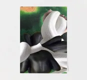 A collage of analogue and digital design methods in a high-gloss aesthetic.