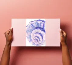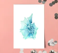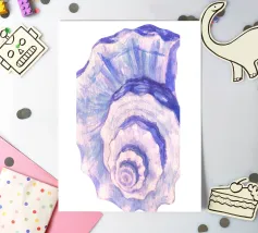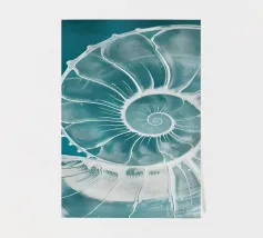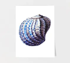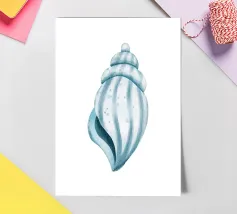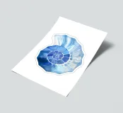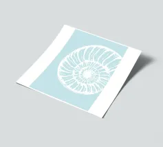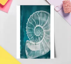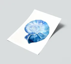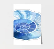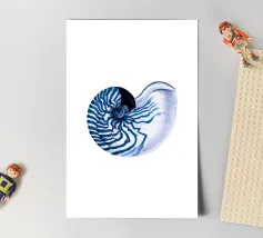 A blue nautilus shell in soft blue tones against a white background radiates calm and aesthetics. Its spiral shape and simple beauty invite the viewer to explore the secrets of the underwater world. A timeless work of art in a maritime style.