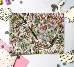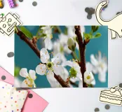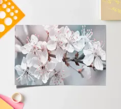 White spring blossoms on a blue background