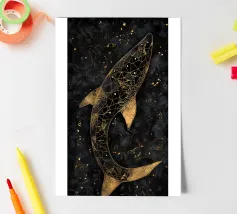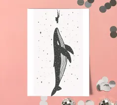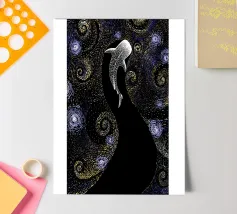 Whales, rays, sharks, and sea turtles glide through the expanse of space, forming surreal and potent visuals. The graceful integration of nature into digital art expands our horizons and frees our spirits. These designs fulfill our yearning for nature and the immensity of being. My illustrations, characterized by a distinctive style where fauna and humanity, oceans and cosmos converge, offer a sense of liberty and the exhilaration of life.