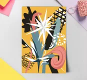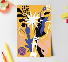 An energetic abstract collage combines a bold star shape with colorful scribbles and patterns, creating a playful, imaginative, and celestial-themed piece of art.