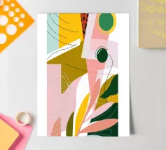 In a colourful mix of light green, pink and orange, this trendy summer poster shines with creative patterns and cool prints that instantly put you in a good mood. The pink and orange abstract dot art gives the boho-chic design a cheerful touch and invites you to enjoy the summer to the full!