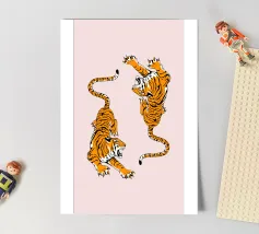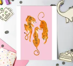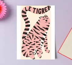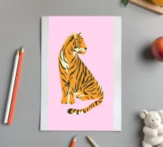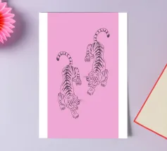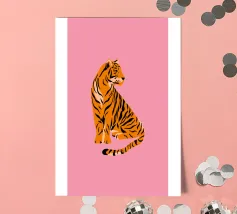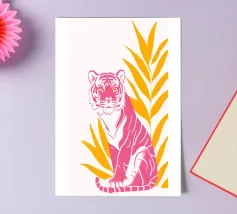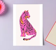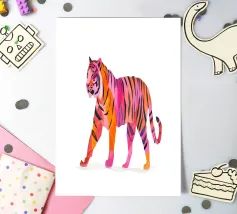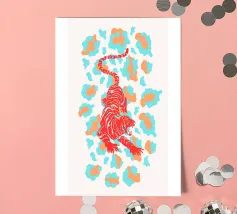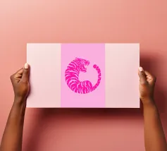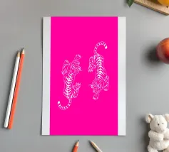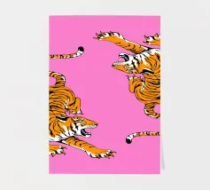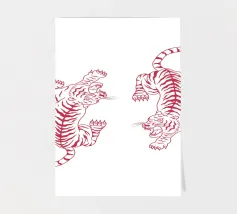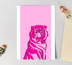 Tiger design, very bright colours that give your products more pep. Bright shades of red depict a tiger with dynamic, curved lines. The stylised depiction gives the illustration an almost mythical quality and immediately catches the eye. The contrasting colours, especially the bright red and pink, create a strong visual presence that radiates energy and vibrancy. This design is ideal for a variety of products such as beach towels, mobile phone covers or other accessories. The bold