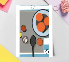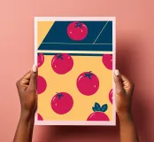 The cheerful and colorful design features a fresh and appetizing tomato pattern.