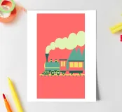 For kids and train enthusiasts, the "Train" illustration is the perfect choice! This cheerful and colorful design features an attractive and detailed train.