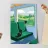 A view from a train window of a green, rolling countryside landscape. The scene is a peaceful, contemplative, and beautiful depiction of travel and the quiet joy of watching the world go by.