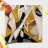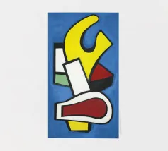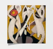 Dynamic abstract forms in white and yellow clash and embrace in a jagged, rhythmic choreography.