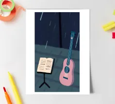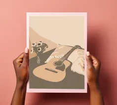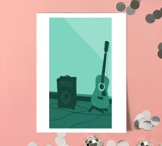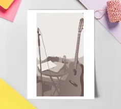 A unique and captivating artistic style. Two guitars depicted in beautiful detail,