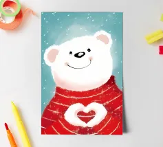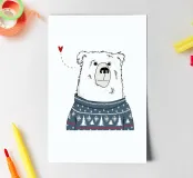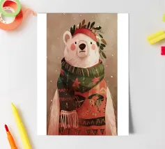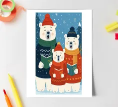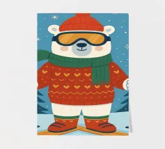 An illustration of a humming bear. This design brings a cozy, whimsical touch of winter magic, perfect for adding a touch of charm and warmth to any part of your life.
