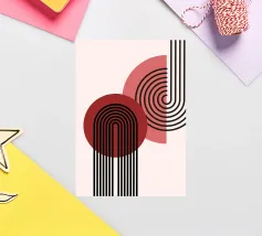 Elevate your space with this captivating abstract line art print, featuring elegant arch and circle motifs in a warm, rich terracotta hue. This minimalist design incorporates subtle yet intriguing patterns within the geometric forms: one section displays delicate polka dots, while another showcases organic, flowing contour lines, adding depth and visual interest. This piece embodies a sophisticated blend of modern and earthy aesthetics. Produced at an impressive 7000x5000 pixels resolution and 300 dpi, this high-quality digital art ensures pristine detail and vibrant color, making it an ideal