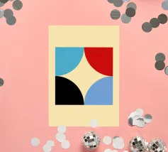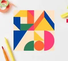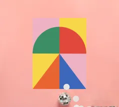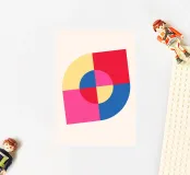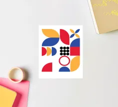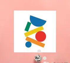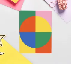 Inject vibrant energy into your space with this captivating abstract geometric art print. The design features a dynamic composition of bold color blocks and circles, creating a playful yet sophisticated visual. A large quadrant shape, split into yellow, red, blue, and hot pink, frames a central circular motif that mirrors these hues in its own divisions. This piece exudes a cheerful, contemporary vibe, perfect for adding a modern pop to any room. Produced at an impressive 7000x5000 pixels resolution and 300 dpi, this high-quality digital art ensures every crisp line and vivid color is rendered