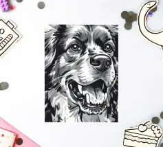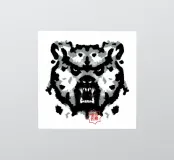 A bear face depicted in black and white with watercolor-like stains that evoke the aesthetic of a Rorschach test. This work of art expertly engages our interpretive skills, making it an ideal choice for bear lovers who enjoy the fun of perception