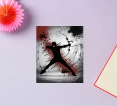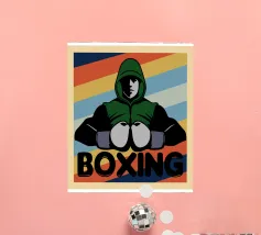 A dynamic graphic artwork capturing the essence of boxing training, a boxer, defined by strength and determination, hones their skills with a punch ball. The vivid motion and intense focus embody resilience, discipline, and the art of combat sports, inspiring all who push their limits