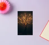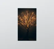 A striking silhouette of a tree with branches aglow, creating an enchanting, abstract design suitable wallpaper. The nighttime backdrop enhances the luminous effect.