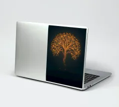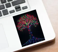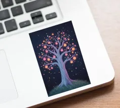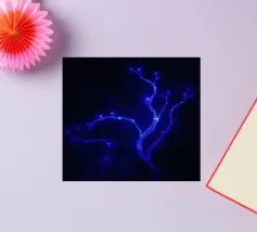 A striking silhouette of a tree with branches aglow, creating an enchanting, abstract design suitable wallpaper. The nighttime backdrop enhances the luminous effect.