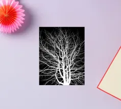 An abstract representation of a tree with illuminated branches stands against a dark backdrop, creating a striking, modern aesthetic ideal for mobile backgrounds.