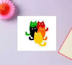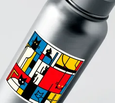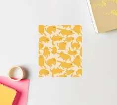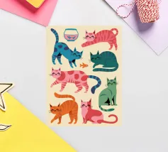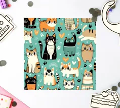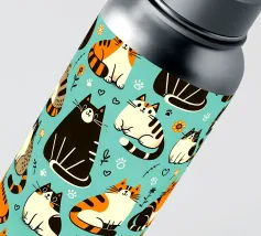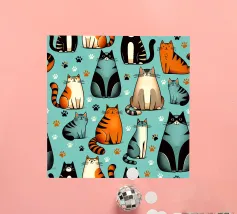This robotic cat pattern artwork is a visually striking & dynamic piece. The artwork features a repeating pattern of detailed representations of robotic cats in different poses. The artist (kathrinmay) has also paid attention to the small details.