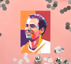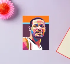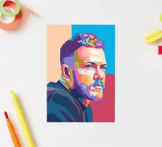 Coco in WPAP style is a bold and colorful geometric portrait of the renowned French footballer. Using vibrant hues and sharp angular shapes, the WPAP (Wedha’s Pop Art Portrait) artwork captures Coco’s calm determination and iconic look, reflecting his elegance, strength, and skill on the football field.