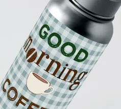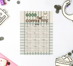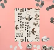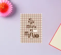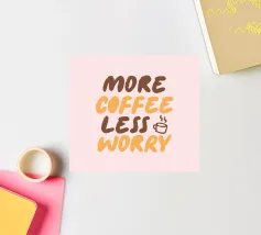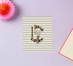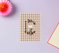 Different coffee quotes art pattern in brown tones on a linen textured cream background.