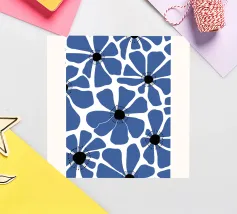 This digital dandelion pattern artwork in blue is a visually striking piece. The artwork features a repeating pattern of dandelions rendered in a digital style. The use of blue creates a sense of harmony and balance throughout the artwork.