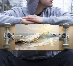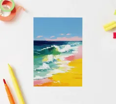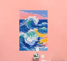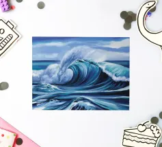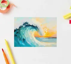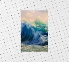 This oil painting captures the power and beauty of offshore waves. Towering swells rise and surge, rendered in bold strokes of deep blue, sea green, and foamy white, creating striking contrasts. Sunlight reflects off the ocean’s surface, shimmering and ever-shifting. The painting evokes a sense of freedom, the majesty of nature, and the boundless energy of the sea.