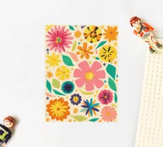A vibrant patchwork of different patterns and motifs, combining floral elements, abstract shapes, and tiled designs. The eclectic mix of colors and styles creates a visually rich and joyful composition, reminiscent of a Mediterranean tile wall.