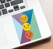Cheerful illustration featuring a stack of emojis with various face expressions, radiating a spirit of diversity, honesty, and openness in expressing emotions.
