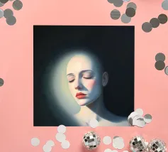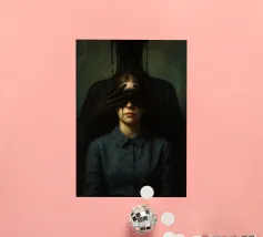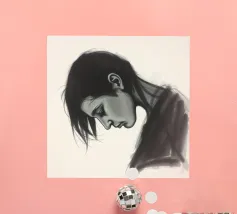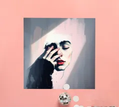 A person with short hair sits against a wall in a softly lit room, conveying deep emotion and introspection. The atmosphere feels heavy and contemplative, enhancing the mood.