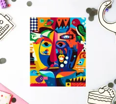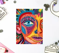 Vivid abstract illustration of a human face rendered with bold brushstrokes and vibrant splashes of red, blue, yellow, and black. Expressive details evoke emotion and creativity, blending modern art and realism.