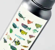 Stickers made of PP film/PET film with protective lamination and different surface structures.