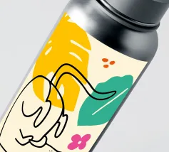 Stickers made of PP film/PET film with protective lamination and different surface structures.