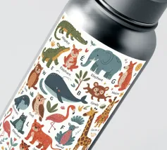 Stickers made of PP film/PET film with protective lamination and different surface structures.