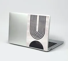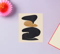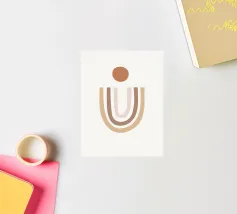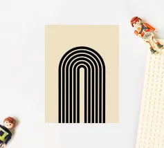 Explore minimalist geometric abstraction with this striking Bauhaus-inspired graphic art print. Featuring a captivating composition of geometric U-shaped or arch-like forms in bold colors (brown/orange and black), arranged in a rhythmic vertical pattern. This artwork embodies principles of abstract form, color, and composition, with a contemporary feel influenced by the Bauhaus movement, highlighting the power of simple repeated geometric elements and color contrast. This high-quality digital art file boasts a stunning 7000x5000 pixel resolution at 300 dpi, ensuring exceptional detail and clar